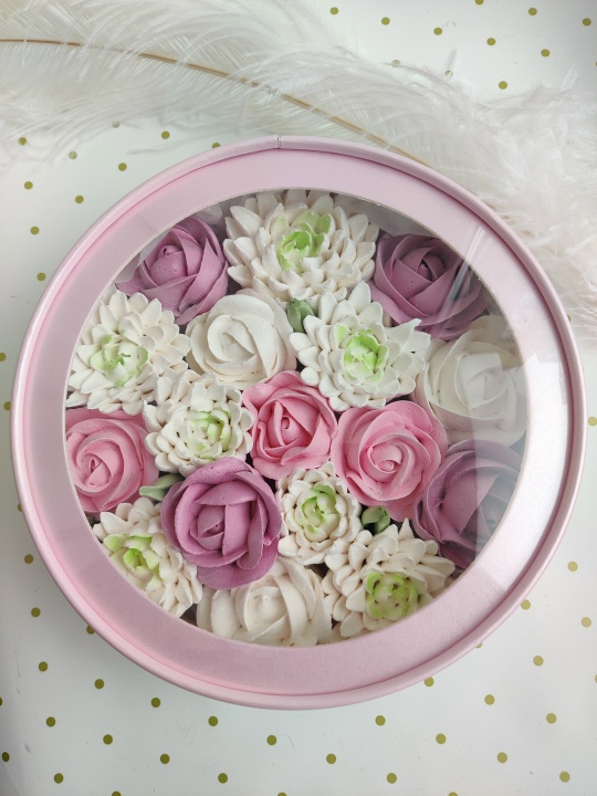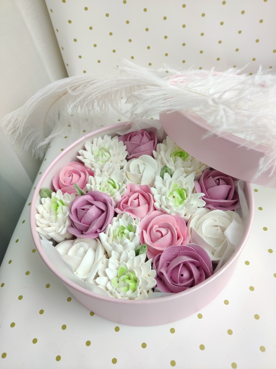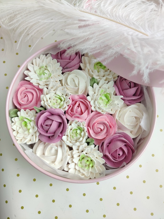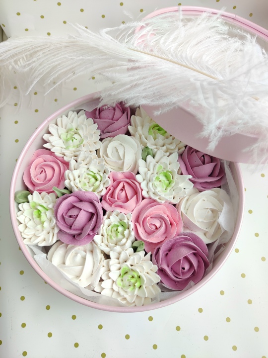 Коробочка с цветами из зефира, размер d21 см h7 см